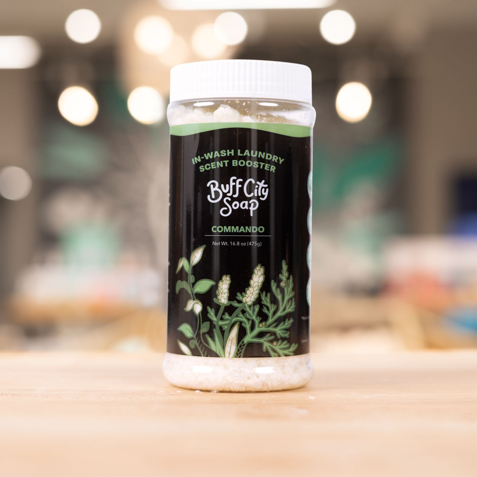 Commando Total Laundry Bundle Each 6-piece bundle includes 1 Laundry Soap Plus, 1 Liquid Laundry Soap, 1 Laundry Scent Booster, 1 pack of Dryer Balls, 1 Wooden Scoop,  1 Measuring Cup. Commando dares you to defy expectations. It's bold, playful, and fresh, blending sweet and smoky scents in a way that feels invit