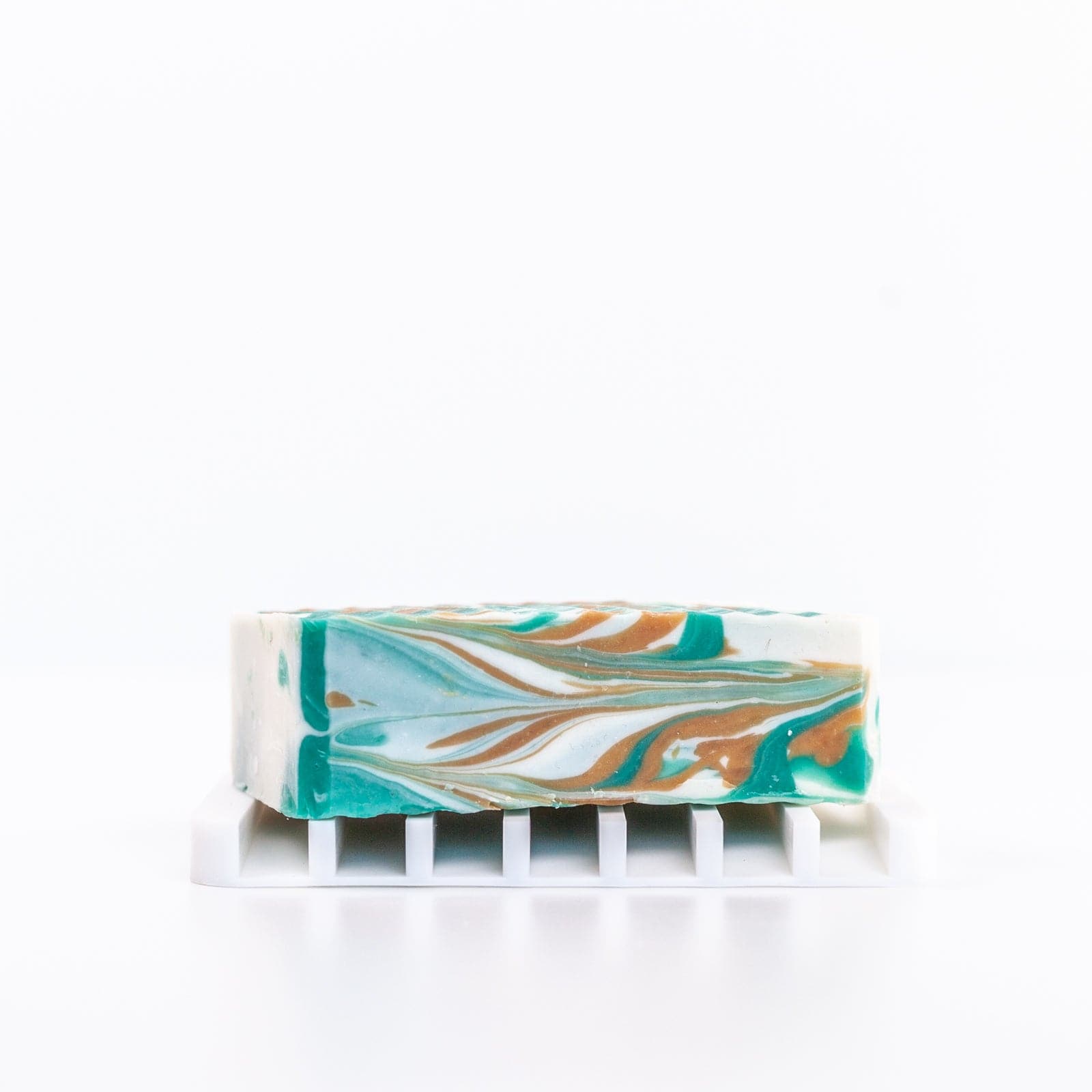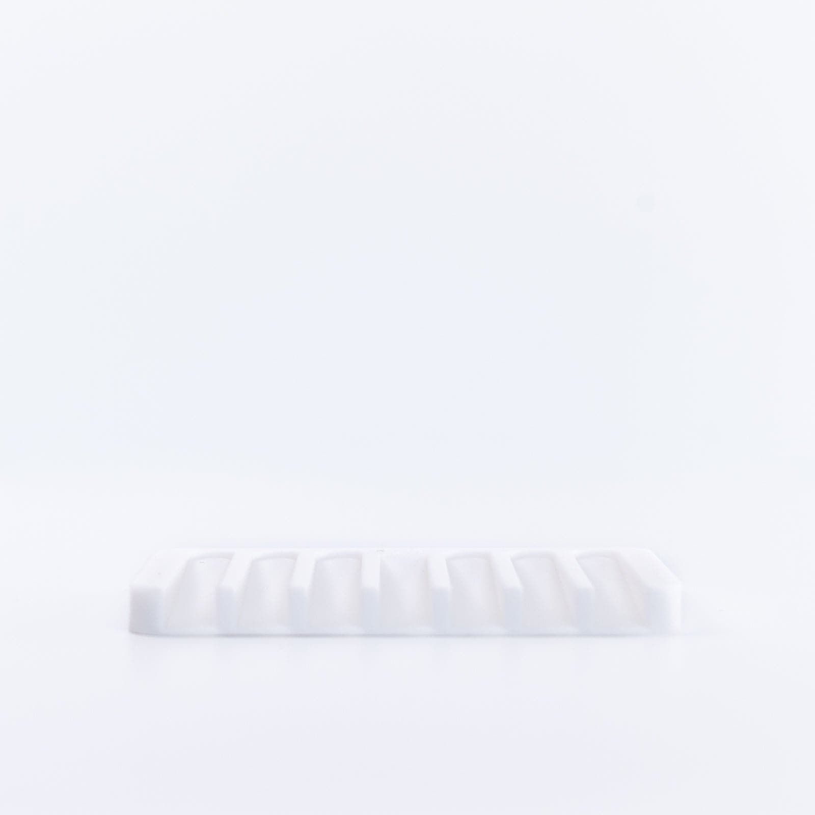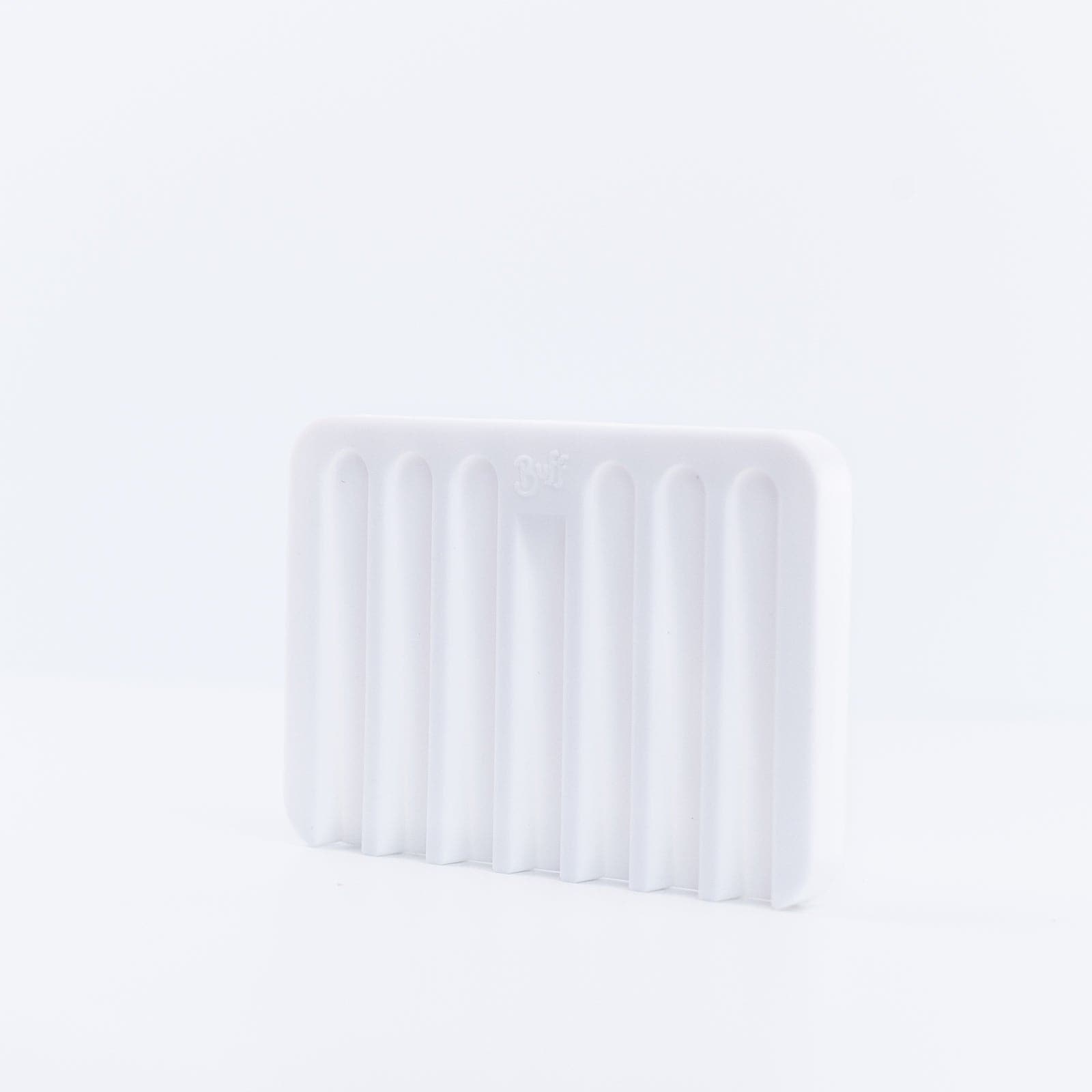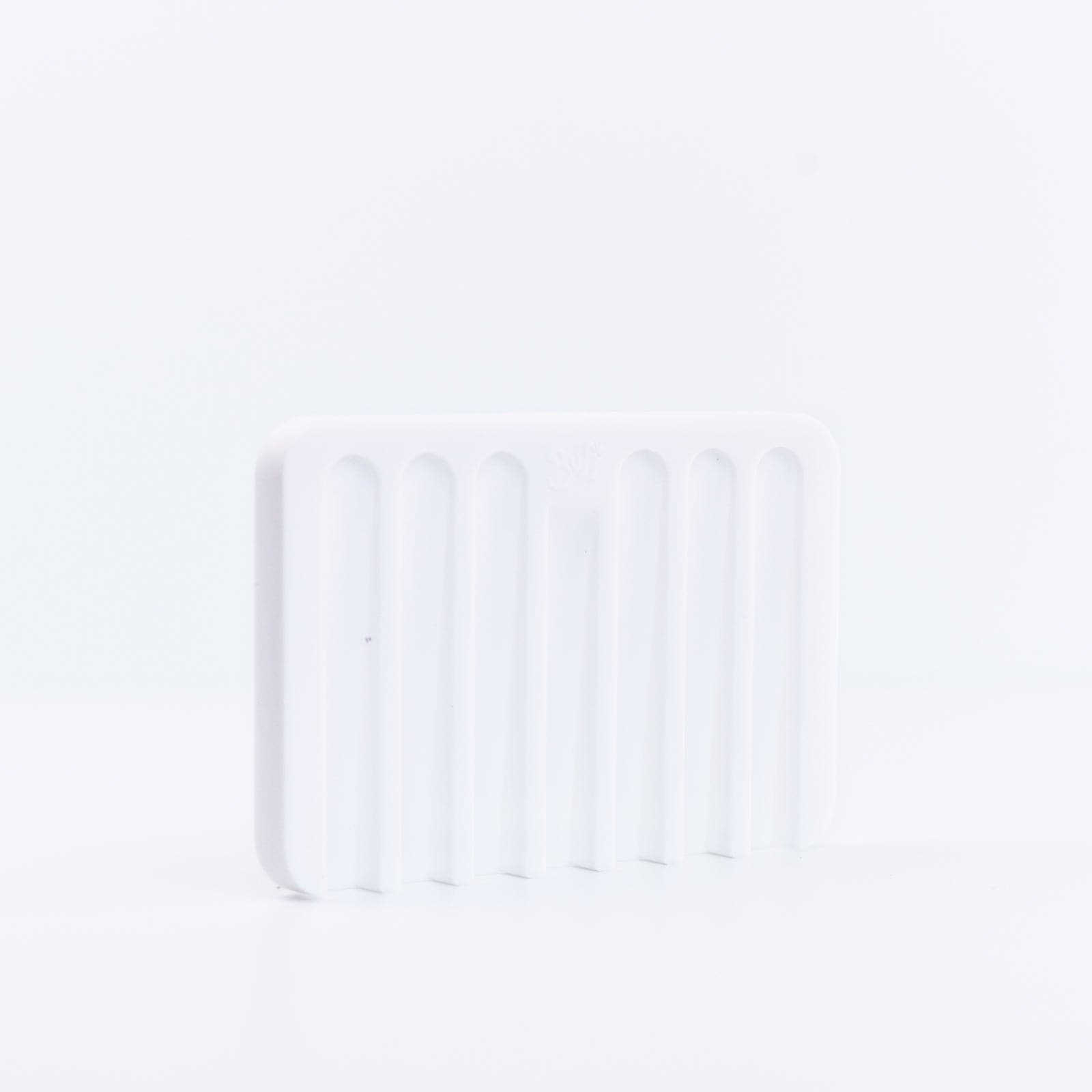 Simple and easy to clean, the White Silicone Soap Dish has a groove and slat design that funnels water away from your Soap Bar, drying in between uses to help prolong the life of your soap.